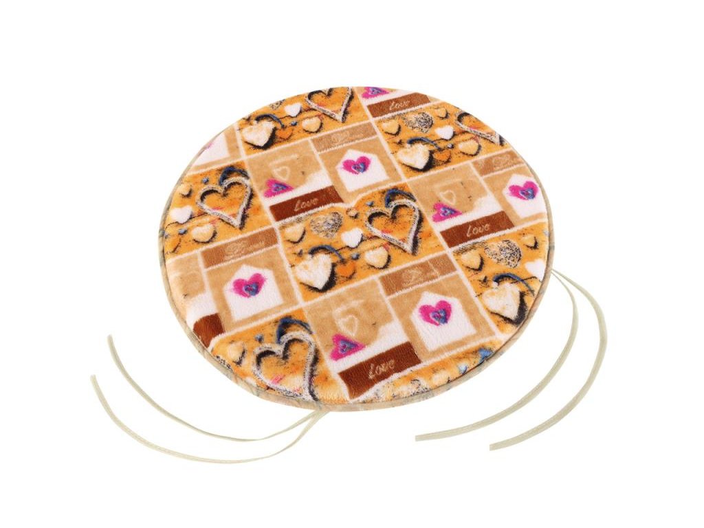 Sedák kulatý hladký se šňůrkami, uvnitř je 2 cm vysoký polyuretan, sedák je uprostřed prošitý okrasným stehem proti pohybu vnitřní vyplně. Praní na 30°C v automatické pračce.Doplňkové parametry